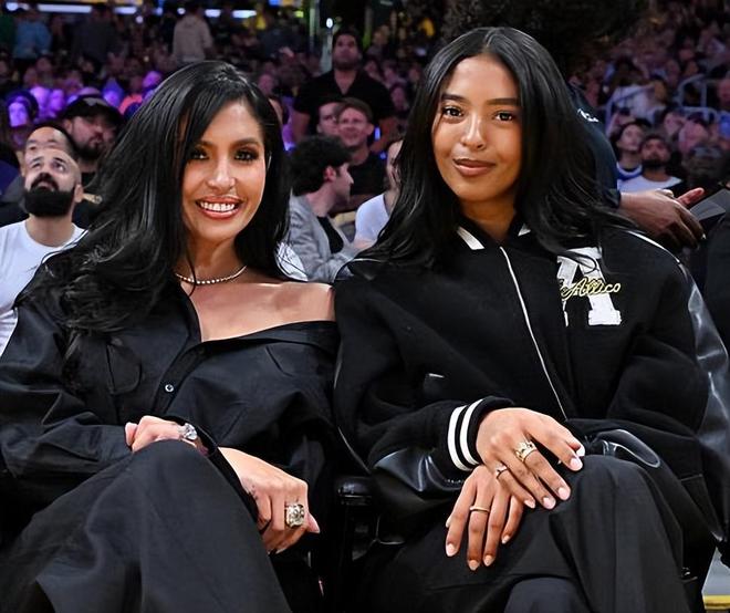 娜塔莉亚也是一位模特,这次现身湖人主场,她和瓦妮莎身着NBA开幕之夜的黑色比赛服,瓦妮莎还戴着冠军戒指,继续传承科比的光辉荣耀。