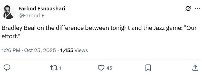 - 2025年10月25日 快船大胜太阳拿赛季首胜 哈登30+7+7 莱昂纳德27分 布克18+7