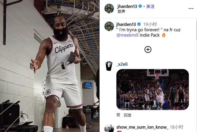 哈登在社媒发布加练视频,并配文到:“我想永远走下去!”